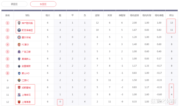 积分榜方面,神户胜利船绝平成都蓉城,他们就还是守住了第1的位置。町田泽维亚赢球后,暂时超过墨尔本城升至第2。上海海港艰难逼平柔佛新山,才拿到本赛季第2个积分智慧优配,继续坐牢副班长之位,落后第8的蔚山HD6分,少8个净胜球,基本上已经出局。成都蓉城落后第八2分,还有些许希望,目前中超三强是继续包揽垫底的三个位置。