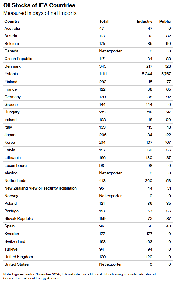 据协调储备释放的国际能源署(IEA)统计,该组织32个成员国在公共应急储备中至少储备了12亿桶石油。在历史上,总部位于巴黎的国际能源署曾协助实施过五次此类干预行动:1991年海湾战争前夕、2005年飓风丽塔和卡特里娜过后、2011年利比亚内战爆发后,以及2022年因俄乌冲突导致的干扰而进行的两次干预。