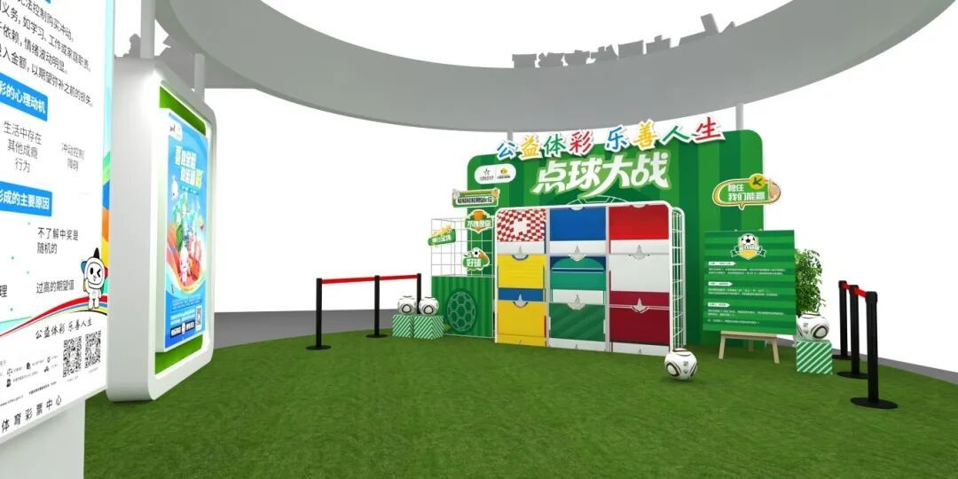 本届粤港澳体博会上,广东体彩主题展区以“公益体彩 乐善人生”为主题,设置了公益展示区、游戏互动区、销售体验区等区域,打造集“视觉识别、公益传递、互动体验”于一体的沉浸式空间。